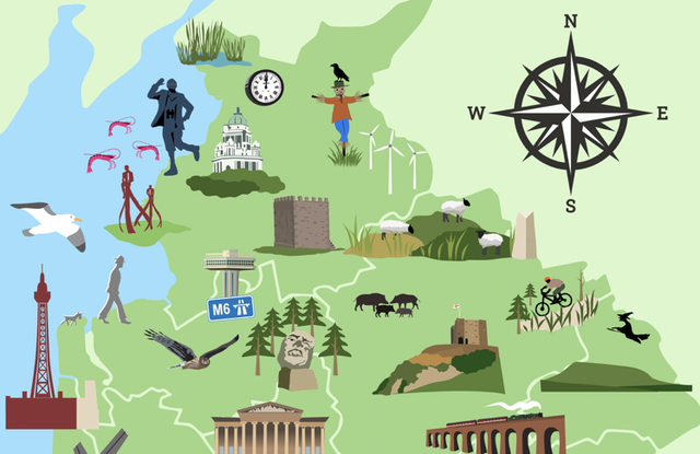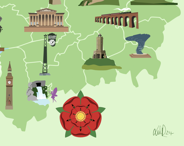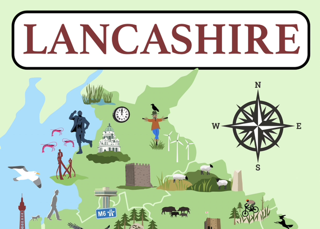 Apron Lancashire illustrated map with landmarks