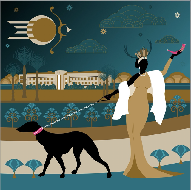 Art deco style illustration depicting the Roman goddess Diana.