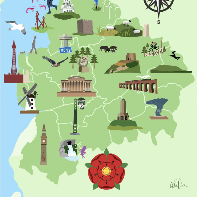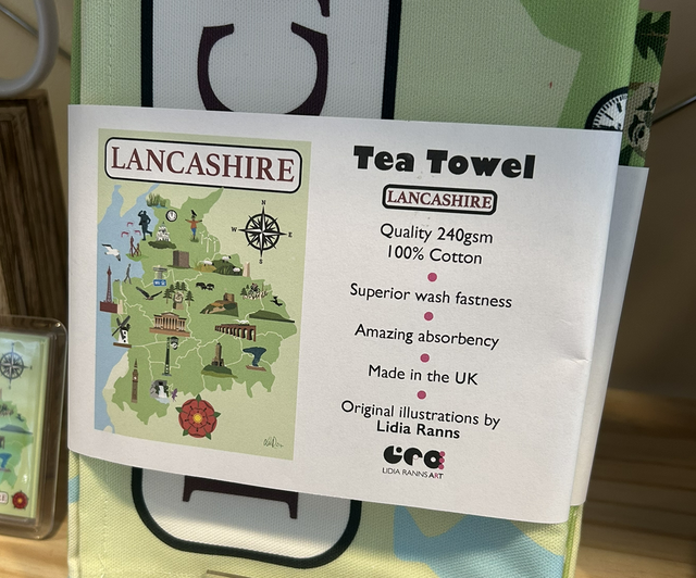 Illustrated Lancashire landmarks tea towels.